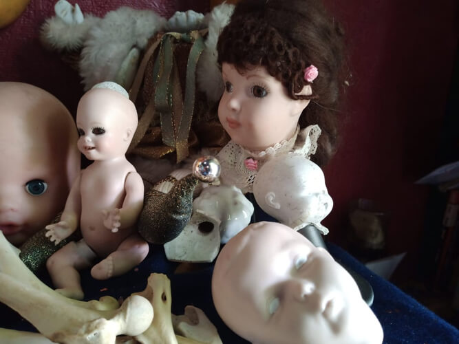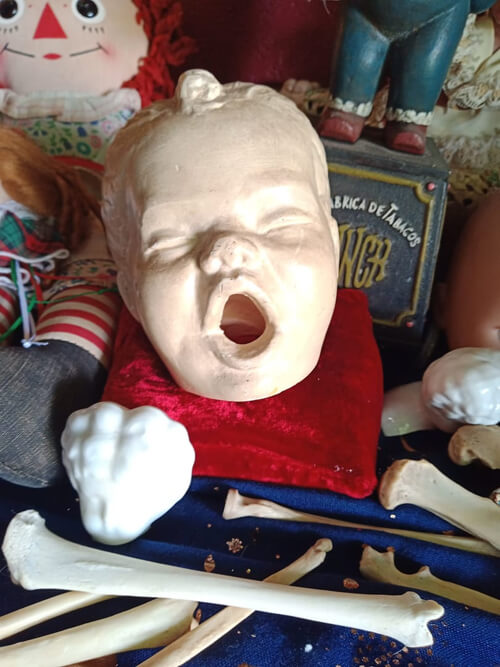 $110.00 The Altar of Broken Dreams is a section of Divine Harmony Spiritual Church that is devoted solely to Jinx work. The altar is home to a large collection of children's dolls - each one with a grim backstory. Over the course of a lifetime, Reverend Saint Germain has collected these dolls from broken families, tragic deaths, cursed or jinxed households, found in haunted buildings, destroyed in catastrophic acts of nature, one from a family who begged the Reverend to take it off their hands. Some were privy to the last words of dying individuals. These dolls have witnessed the worst of mankind's misfortunes and depravities and, when properly enticed, will pass them on to the target of your anger. |
