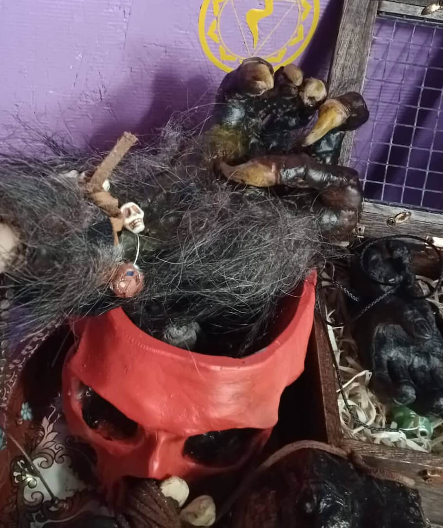 This ceremony makes use of of several curious relics and totems to call forth the combined power of beast and man. The shrine contains an antique monkey's paw which was said to grant wishes, a strange clawed hand found in Tibet which has been speculated to be from a warewolf or a yeti, the head of an aligator named Bill, an enchanted conch shell which is blown during the ceremony, and a doll once belonging to a child who grew up to be a civil rights activist; representing the primal human drive to fight against injustice. This altar can serve various ceremonies for a range of outcomes, everything from granting your heart's desire to bringing the swift hand of retribution down upon wrongdoers.