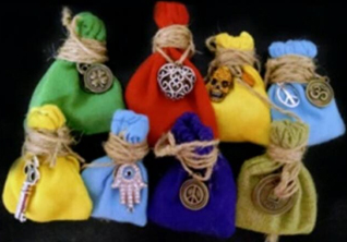 A Mojo Bag is a small bag containing magical items, such as roots, charms, minerals, animal relics, personal items or concerns, written prayers or wishes, which have been carefully prepared and combined to achieve a specific goal. I make powerful Mojo Bags. Please contact me for details how you can contract me to make one for you. It takes at least a week to prepare, so take this into consideration before ordering. I include a picture of your mojo's ingredients because you can't open them once I seal them. More information about the creation and maintenance of Mojo Bags is included below. Mojo Bags can also be custom made for special conditions. Prices Vary Depending on Your Needs - Contact Me for DetailsMojos also take about a week to make because each are given a seven-day sanctification. Seven days of prayer, candle-and-incense cleaning charges the mojo with immense spiritual energy. The cost of the mojo depends on what you want in them. I can make effective mojos for a reasonable price. However, some "power" items are made of silver, or are otherwise rare, and are more expensive. If you want me to include them your mojo will, of course, cost more. We can discuss your specific requirements when we talk. Making a Mojo Bag is a painstaking process. Each component must be carefully selected, vitalized, and put into balance with the other components to create a living Mojo. I make my own bags from scratch. No machines are used. I hand-sew my bags and bless every stitch. The bag is usually constructed of sewn flannel, although leather or other materials can be used. I add the components, dressing and blessing each one, train the bag, breathe it to life and seal it. The bag must be breathed to life or it won't work. It's just a bag of junk. A properly constructed Mojo is warm and vibrant like a puppy or kitten. You can feel its life-force working for you. I prefer to use flannel in the colors traditionally associated with the magical use for which the bag is intended: red for love; green for money; blue for peace and harmony; white for spirituality etc. Mojo Bags can be made to attract love, keep lovers faithful, attract gambling luck, attract success in business, protection from enemies, improve health, increase psychic and spiritual sensitivity. Mojo bags are considered alive and must be fed a little whiskey once a week or they stop working. As my mom used to say, "Just like your father." Your Mojo Bag must also be kept hidden away from the sight of others. No-one can be allowed to see or touch it. Mojo bags are traditionally hidden on one's person. Women used to pin them inside their bras and men inside the waistband of their pants. In the old days allowing someone to touch your Mojo was called "killing it." Touching the Mojo Bag robbed it of it's power. Mojo Bags are sold as curios only. Contact me to discuss making your own Mojo Bag. |